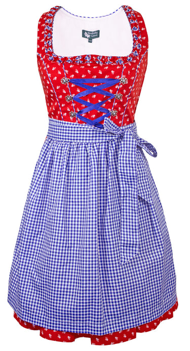 Zauberhaftes Dirndl in kräftigem Rot und Blau aus der Alpenfeeling Trachtenmode Kollektion.