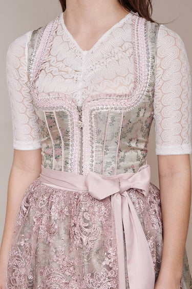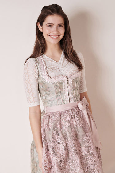 Krüger Dirndl "Roxana" Spitzenschürze 414365 | Hellgrün Rosa 60cm