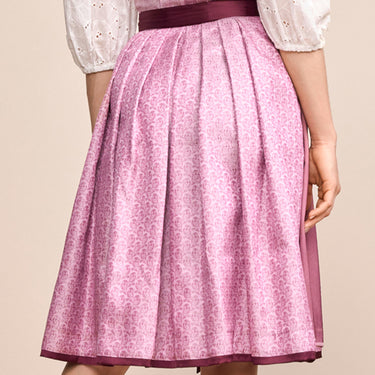 Der Rock des Dirndls Maryanne endet mit einer Länge von 60 cm und reicht charmant unter das Knie. Diese Länge sorgt für eine elegante, aber dennoch verspielte Silhouette, die zu verschiedenen Anlässen getragen werden kann – von festlichen Events bis hin zu besonderen Feierlichkeiten. Die feinen Ornamentmuster auf dem Rock verleihen ihm eine Extraportion Extravaganz und fangen das Licht auf wunderschöne Weise ein. Diese dekorativen Akzente heben das Dirndl von anderen ab und machen es zu einem wahren Blickfang.