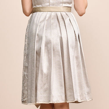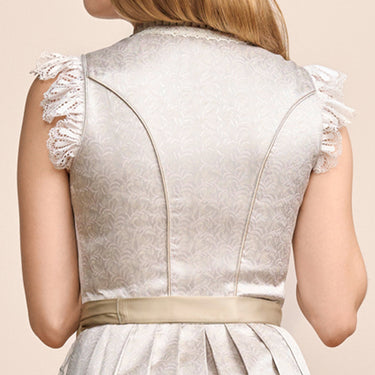 Den krönenden Abschluss des Dirndls bildet die fein bestickte Schürze, die mit filigranen Mustern und einer exquisiten Handwerkskunst verziert ist. Sie rundet das Design harmonisch ab und verleiht dem Dirndl Erla eine zusätzliche edle Note. Diese Schürze fügt sich perfekt in das Gesamtbild ein und sorgt dafür, dass das Dirndl bei jedem Anlass zu einem wahren Blickfang wird.