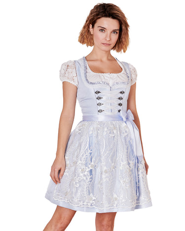 Krüger MADL Dirndl "Samantha" mit Spitzenschürze 419167 | Hellblau 50cm