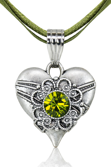 Die kunstvollen Verzierungen rund um den Kristall verleihen dem Anhänger eine nostalgische Note und machen ihn zu einem echten Blickfang. Gleichzeitig sorgt das doppelreihige Kettenband in zarter Satinoptik für einen modernen, weichen Kontrast zum antik anmutenden Herz. Das Band schmiegt sich angenehm an den Hals an und bietet hohen Tragekomfort – ideal für den ganzen Tag.
