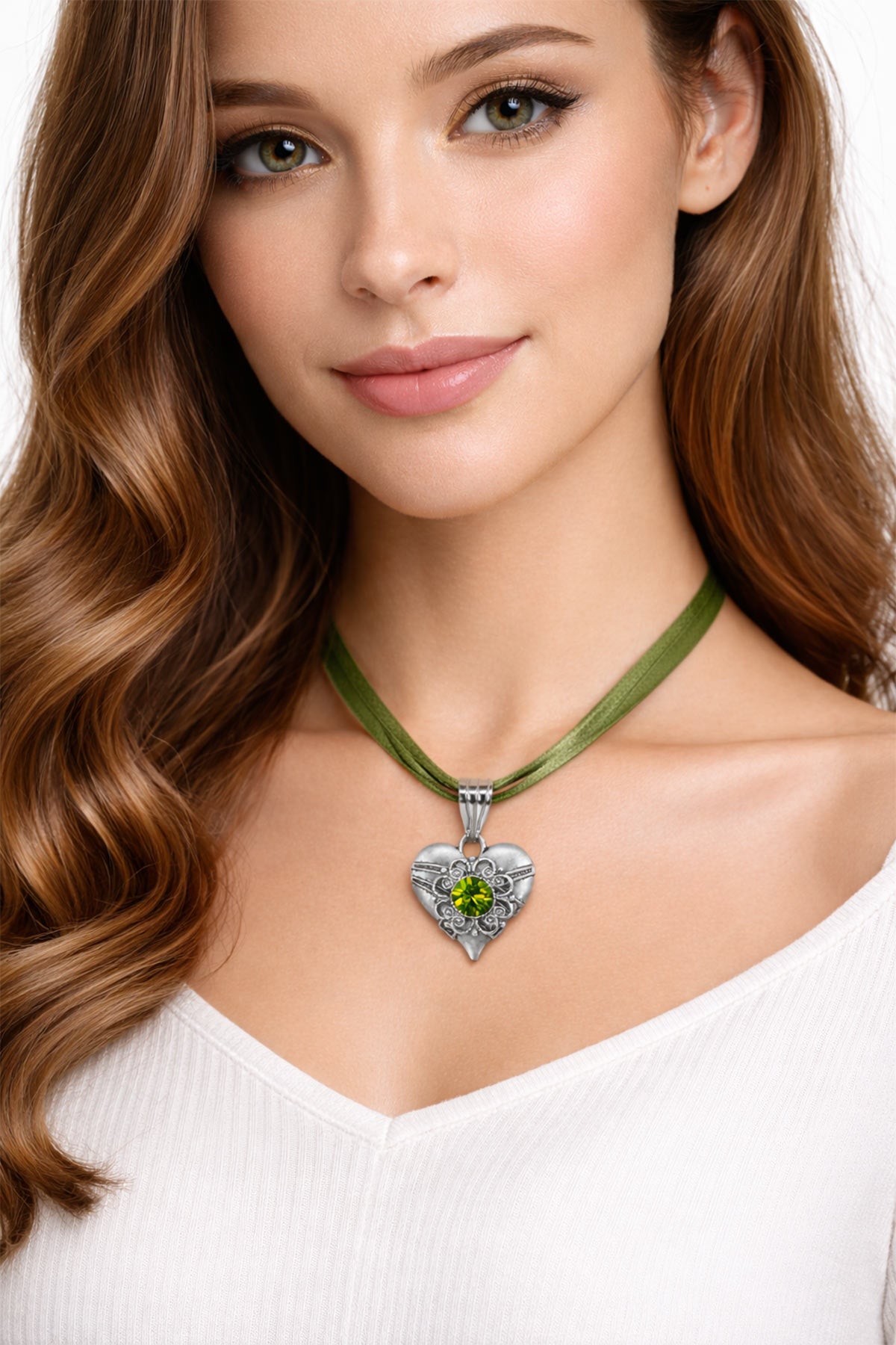 LUISIA® Halskette "Paula" - Herzanhänger und Premium Kristall | Grün