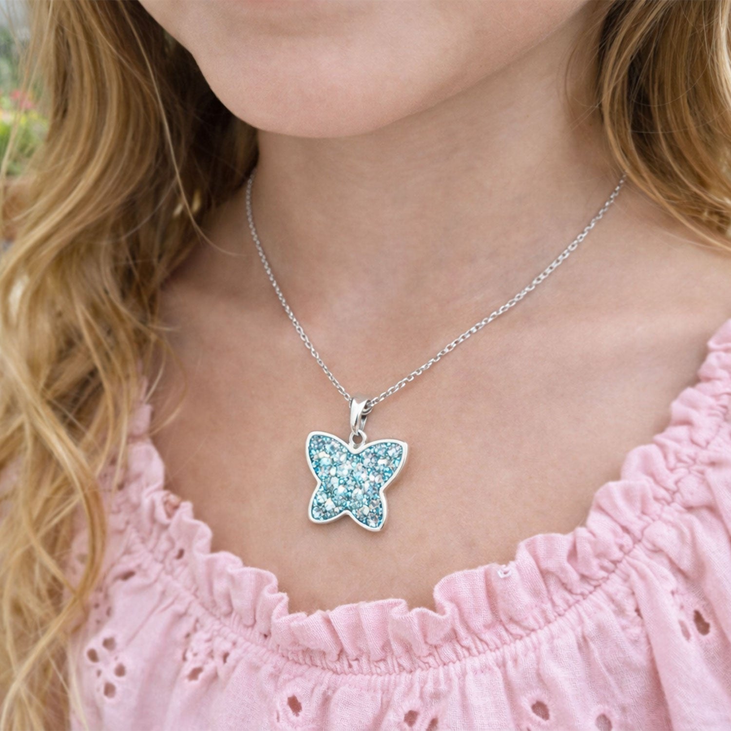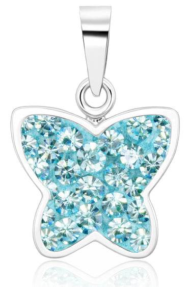 LUISIA® Kettenanhänger "Schmetterling" - Premium Kristalle - 925 Sterling Silber | Hellblau