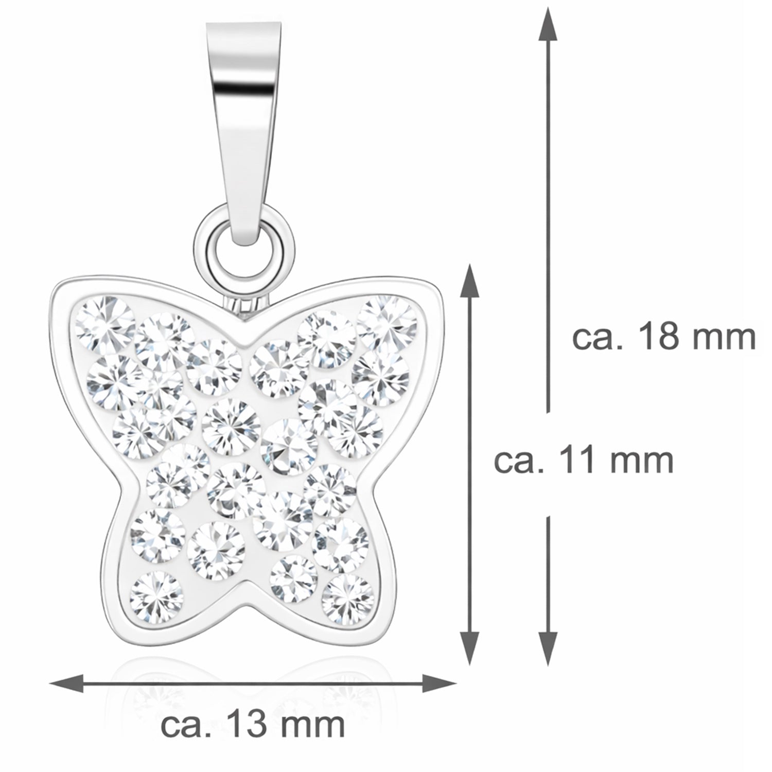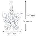 Mit einer Gesamtgröße von ca. 18 mm (inklusive Öse) und einer Breite von ca. 13 mm besitzt der Anhänger eine dezente, aber wirkungsvolle Präsenz. Die reine Motivgröße von ca. 11 mm macht ihn zum perfekten Accessoire für den Alltag sowie für besondere Anlässe. Dank der harmonischen Proportionen wirkt der Schmetterling feminin, stilvoll und gleichzeitig modern.