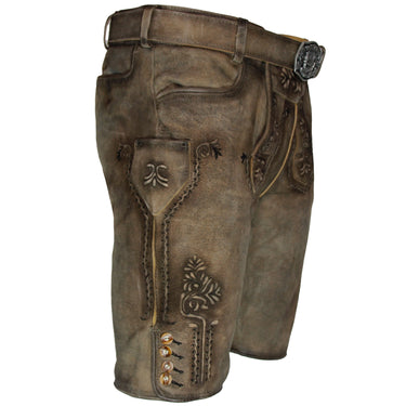 MADDOX Kurze Herren Lederhose "Zugersee" mit Gürtel | Antik R. Sahara