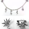 Das schöne Charivari hat eine lange Gliederkette, welche an den Endstücken in Edelweißform befestigt sind. An der Rückseite der Edelweiße ist je eine Sicherheitsnadel zur Befestigung an Ihrem Kleidungsstück angebracht. Die Charivarikette ist mit verschiedenen Anhängern in Form eines Hirschen, eines Waldhornes, eines Geweihstückes oder einer Enzian Blume verziert.