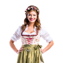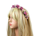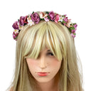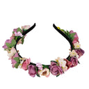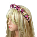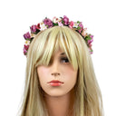 Blumen Haarreif Sabia - Bezaubernder Haarschmuck zum Dirndl, für Hochzeiten, Kommunion oder Festivals. Dieser hübsche Blumenhaarreif ist aktuell der Trend zu Dirndl und Trachten auf Oktoberfest, Kirchweih und auch für das Outfit zum Festival. Aber auch für Blumenmädchen und Brautjungfern zur Hochzeit oder zu festlichen Anlässen passt dieser Haarreif perfekt. Dieser bezaubernde Haarschmuck ist wirklich vielseitig einsetzbar. Der Blumenhaarreif ist mit vielen schönen Rosen, Blüten, Blättern und Knospen verziert und mit einem bequemen Band überzogen.