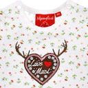 Der Kurzarmbody ist auf der Brust mit einem großen braunen Herz mit Blumen und der Aufschrift Lausmadl verziert. Das Hirschgeweih am Herz verleiht dem Unterziehbody den trachtigen Charakter. Druckknöpfe an beiden Schultern und im Schritt sorgen für einfaches An- und Ausziehen des Stramplers.