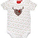 Zauberhafter Baby Body aus der Trachten Serie Alpenglück für die ganz kleinen Trachtenfans! Der BONDI Mädchen Body in Weiß mit dem zauberhaften kleinen Blümchen ist aus Baumwollmaterial hergestellt und fühlt sich besonders angenehm und weich auf der Haut an.