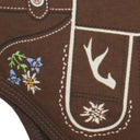 Das Design des Babybodys erinnert an eine klassische Lederhose mit Stegträgern, die auf charmante Weise die traditionelle Trachtenmode widerspiegelt. Der angedeutete Hosenlatz und die verspielte Gestaltung machen diesen Body zu einem echten Blickfang. Ein weiteres Highlight sind die liebevollen Aufschriften „Herzbube“ und „Gipfelkraxler“, die sowohl am Bund als auch an der Brust positioniert sind. Diese niedlichen Details verleihen dem Body nicht nur einen festlichen Touch, sondern setzen auch einen modischen Akzent, der perfekt zur Trachtenmode passt.