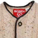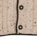 Besonders traditionell zeigt sich die Jacke durch das trachtige Zopfgestrick, das an den Seiten und am Kragen für eine edle, rustikale Note sorgt. Diese liebevollen Details verleihen der Strickjacke einen besonders authentischen Charme, der an alpenländische Trachten erinnert. Die durchgängige Knopfleiste mit hochwertigen Trachtenknöpfen rundet das Design perfekt ab und sorgt für eine einfache Handhabung beim An- und Ausziehen.