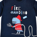 Der Shirt ist aus hochwertiger, dunkelblauer Baumwolle gefertigt und mit einem Druckknopfverschluss an einer Schulter ausgestattet. Da macht das selbständige An- und Ausziehen gleich noch viel mehr Spaß. Die tolle Feuerwehr Dino Applikation, kombiniert mit Stickerei und coolen Aufnähern lassen Ihren kleinen Jungen mit Stolz und Freude in die Kita und Kindergarten gehen.