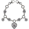 Wunderschönes silbernes Dirndl Charivari mit großem Herz- und süßen kleinen Edelweissanhängern. Das Herz ist mit einen kleinen Strassstein versehen. Der Trachten Schmuck kann am Oberteil oder den Schürzenbändern des Dirndls angebracht werden, ist aber auch an den Gürtelschlaufen von Trachten Lederhosen ein absoluter Hingucker! Das Charivari kann angenäht oder eingehängt werden.