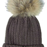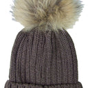 Damen Beanie Strickmütze mit Fellbommel - Dunkelbraun