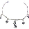 Das schöne Charivari ist sehr filigran gearbeitet und mit verschiedenen Anhängern, wie z.B. einer Brezel, einer Lederhose, Blumen und einem schön verzierten Hirschkopf gestaltet. Das silberfarbene Accessoire kann durch die Karabinerhaken am Dekolleté des Dirndls angebracht, aber auch als Armkettchen getragen werden.