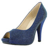 Die schönen Peeptoes sind aus blauem Textil Material gefertigt welches je nach Lichteinfall wunderschön türkis oder royalblau glitzert und schimmert. Die Damenpumps haben einen kleinen Plateau Absatz, welcher ca. 1,5 - 2,5 cm hoch ist, eingearbeitet. Der Pfennigabsatz lässt Ihr Bein elegant und schmal wirken. Die Decksohle der Glitzerpumps ist aus Leder gefertigt, so sind die Schuhe sehr angenehm zu tragen. Wenn Sie einen hochwertig verarbeiteten, zeitlos schönen und vielseitig einsetzbaren Schuh suchen, dann sind diese Glitter Pumps genau das Richtige für Sie.