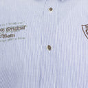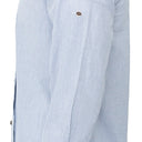 Das Hemd ist aus reiner Baumwolle und hat feine weiß-blaue Streifen. Die Ärmel sind krempelbar und lassen sich mit einer Lasche lässig nach oben knöpfen. Praktisch, so lässt sich das Oberteil sowohl bei Hitze, als auch an kühleren Tagen angenehm tragen.