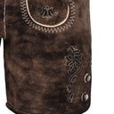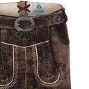 Die braun-graue kurze Lederhose aus Echt-Leder ist besonders hochwertig verarbeitet und dadurch weich im Griff. Schöne Stickereien seitlich am Bein und am Hosenlatz machen diese Hose zu einem echten Hingucker. Der Hosenlatz wird vorne durch Knöpfe in Hirschhorn Optik geschlossen und abgerundet wird die Kinderlederhose mit einem Gürtel mit einer silbernen Schnalle. Die Bundweite kann hinten durch ein Lederband reguliert werden. Die Jungen-Lederhose hat vorne zwei Hosentaschen und ist zusätzlich noch mit einer kleinen Seitentasche versehen.