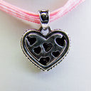 Ein zauberhafter Herz-Anhänger hängt an einem doppellagigen Band, eines davon ist kariert, das andere eine schmale Kordel. Das süße Herz ist schön mit Swarovski Strass besetzt.
