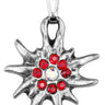 Ein schöner Edelweiß-Anhänger hängt an einem einreihigen, farbigen Band. Das Edelweiß ist mit Swarovski Strass besetzt und funkelt sehr schön.