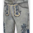 Krüger BUAM Kurze Lederhose "Graham" mit Gürtel 961567| Grau Blau