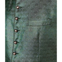 Diese schöne Herren Trachtenweste vom deutschen Hersteller Krüger ist ein echter Hingucker und ergänzt perfekt das Trachtenoutfit. Die Herrenweste hat einen eleganten Look, sie wird mit silbernen Zierknöpfen geschlossen und farblich abgesetzte Paspeln setzen zusätzlich Akzente. Die Frontseite ist aus einem leicht glänzenden, grünen Stoff mit feinem Muster hergestellt, die Rückseite aus einem glatten Material. Die Weite lässt sich über einen Querriegel im Rücken individuell anpassen. Der kleine Stehkragen und die Knöpfe in Altsilber unterstreichen den trachtigen Charakter der Weste perfekt und lassen diese sowohl modern, als auch traditionell wirken. Wer moderne Tradition, Hochwertigkeit und Detailverliebtheit schätzt, für den dürfte diese Trachtenweste genau das Richtige sein.