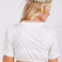 Für alle, die es nicht so offenherzig und mit weitem Ausschnitt mögen, ist die zauberhafte Dirndlbluse Charlotte in Ecru für Damen von Krüger Collection das Non-Plus-Ultra.