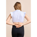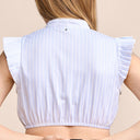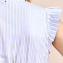 Ein weiteres praktisches Detail dieser Bluse ist die Knopfleiste, die einen einfachen Einstieg ermöglicht und gleichzeitig das Design mit einem funktionalen Akzent versieht. Die Knöpfe sind elegant und passen sich perfekt dem Gesamtbild der Bluse an, ohne von ihrem zarten Charme abzulenken. Das Streifenmuster, das sich dezent über das gesamte Kleidungsstück zieht, sorgt für eine subtile Dynamik und frische Leichtigkeit. Es hebt die Bluse von anderen traditionellen Trachtenblusen ab und verleiht ihr einen modernen Twist, der gleichzeitig die stilvolle und feminine Ausstrahlung bewahrt.