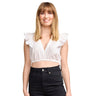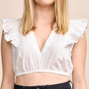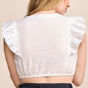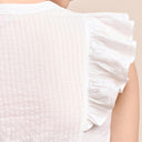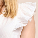 Besonders ansprechend sind die kurzen Volantärmel, die der Bluse eine verspielte und luftige Note verleihen. Diese zarten Ärmel machen die Bluse perfekt für die warmen Tage des Jahres und sorgen gleichzeitig für einen hohen Tragekomfort. Sie ermöglichen eine angenehme Bewegungsfreiheit und garantieren, dass du dich an sonnigen Tagen stets wohlfühlst. Die filigranen Volants fügen der Bluse eine feminine Eleganz hinzu, ohne dabei aufdringlich zu wirken.