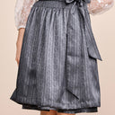 Der Rock des Dirndls Diliana harmoniert wunderbar mit dem Mieder und setzt ebenfalls auf ein dezentes Ornamentmuster, das den klassischen Look verstärkt und dem Dirndl eine edle Tiefe verleiht. Die Rocklänge von 60 cm endet knapp unter dem Knie und sorgt für eine schmeichelhafte Silhouette, die das Dirndl sowohl elegant als auch praktisch macht. Diese Länge eignet sich ideal für verschiedene Anlässe, von festlichen Veranstaltungen bis hin zu fröhlichen Feiern. Die dezente Schürze mit ihrem zarten Blumenmuster rundet das Gesamtbild perfekt ab und verleiht dem Dirndl eine zusätzliche feminine und verspielte Dimension. Die feinen Blumenmuster fügen sich harmonisch in das Design ein und machen das Dirndl zu einem einzigartigen Blickfang, der sich von anderen abhebt.