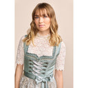 Das ärmellose Design garantiert dir maximale Bewegungsfreiheit und hohen Tragekomfort, damit du dich den ganzen Tag über frei bewegen und gleichzeitig stilvoll auftreten kannst. Die leichte Stoffwahl sorgt für ein angenehmes Tragegefühl, das auch an langen Veranstaltungstagen nicht zu wünschen übrig lässt. Die bestickte Schürze rundet das Dirndl perfekt ab und verleiht ihm einen klassischen, edlen Akzent, der das Gesamtbild vervollständigt. Die filigranen Stickereien auf der Schürze sorgen für einen raffinierten Blickfang und setzen einen charmanten Akzent, der die feminine Eleganz dieses Dirndls unterstreicht.