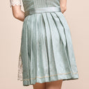 Der Rock des Dirndls ist 50 cm lang und endet charmant knapp über dem Knie. Diese Länge sorgt für eine verspielte und dennoch elegante Ausstrahlung. Der Rock greift das schimmernde Muster des Mieders auf und sorgt für ein harmonisches Gesamtbild, das modern und zugleich klassisch wirkt. Die Länge des Rocks ist ideal für verschiedene Anlässe – sei es ein festliches Event oder eine fröhliche Feier im Freien, das Dirndl Lilinoe passt sich jeder Situation an und macht immer eine gute Figur.
