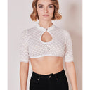 Die hübsche Dirndlbluse Franja ist ein absoluter Hingucker! Das besondere Muster in Kombination mit dem aufregenden Lochausschnitt machen diese Bluse zu etwas ganz Besonderem. Die zarten Spitzendetails an Kragen und Ärmel runden den Look ab. Der eingearbeitete Gummizug am Blusenabschluss verleiht der Trachtenbluse einen perfekten Sitz und eine gute Passform. Die Bluse ergänzt perfekt viele Dirndl und passt besonders schön zu traditionellen Kleidern.