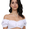 Mit dieser wunderschönen Dirndlbluse für Damen im Carmen Schnitt lassen Sie die Herzen höher schlagen zu Oktoberfest oder Kirchweih! Die Bluse ist aus einem angenehm zu tragenden Material hergestellt. Der Blusenausschnitt kann gerafft werden und zaubert so ein verführerisches Dekolleté. Das Highlight dieser Carmenbluse ist das leicht transparente Herz, welches die kurzen Ärmelchen toll in Szene setzt. Der eingearbeitete Gummizug am Blusenabschluss verleiht der Trachtenbluse einen perfekten Sitz und eine gute Passform.