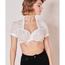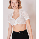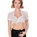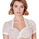 Die Dirndlbluse Linette überzeugt mit ihrer schönen Spitze auf Anhieb. Die Bluse ist vielfältig kombinierbar und macht dein Outfit zum Hingucker. Die filigrane Borte an den Ärmeln und dem Ausschnitt rundet den Look perfekt ab.