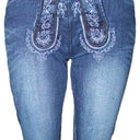 Lekra Damen Jeans Bea Kniebundhose in Lederhosen Optik - Blau
