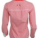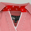 Die Bluse hat einen kleinen Stehkragen mit V-Ausschnitt und passt damit sowohl zur traditionellen Lederhose oder zum Trachtenrock, sieht aber auch mit einer lässigen Jeans super aus. Das Karomuster im frischen Rot und Weiß unterstreicht den Trachtencharakter auf charmante Art und Weise. Das trachtige Oberteil ist aus einem pflegeleichten Baumwoll-Mix und lässt sich auch an wärmeren Tagen sehr angenehm tragen. Abgerundet wird die Damenbluse mit kleinen Hirsch-Stickereien auf dem Rücken und an den Innenseiten der krempelbaren Ärmel.