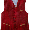 MADDOX Herren Leinen Trachten Weste Kofel mit Streifen - Weinrot