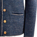 Der Trachtenjanker ist in grobem Strick hergestellt und mit einem kleinen Stehkragen versehen. Er wird vorn mit Knöpfen in traditioneller Hirschhorn-Optik geschlossen, er hat zwei Eingriffstaschen. Die Jacke ist bei uns in verschiedenen Farben erhältlich, in der modernen Farbe Indigoblau wird die Strickweste ganz sicher zu Ihrem Lieblingsbegleiter. Das angenehm tragbare Woll-Material wird Sie überzeugen.