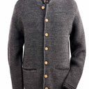 Der Trachtenjanker ist in grobem Strick hergestellt und mit einem kleinen Stehkragen versehen. Er wird vorn mit Knöpfen in traditioneller Hirschhorn-Optik geschlossen, er hat zwei Eingriffstaschen. Die Jacke ist bei uns in verschiedenen Farben erhältlich, in der traditionellen Farbe Kiesel wird die Strickweste ganz sicher zu Ihrem Lieblingsbegleiter. Das angenehm tragbare Woll-Material wird Sie überzeugen.