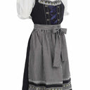Unser exklusives, zauberhafte Kinder-Dirndl vom deutschen Trachten Hersteller Maddox ist in klassischem Marineblau gehalten und wird Sie und Ihre Tochter sicher begeistern. Liebevolle Details wie Blümchenborten, altsilberne Miederhaken und ein Grundstoff mit kleinen weißen Punkten machen das Kinderkleid zu einem perfekten Begleiter bei vielen Anlässen. Ergänzt wird das Kleid durch eine klassische karierte Schürze, die eine individuelle Taillierung ermöglicht. Das Dirndl wird hinten mit einem Reißverschluss geschlossen. Den Brustbereich ziert eine blaue Satin-Schnürung mit strassbesetzten Miederhaken, die den klassischen Charakter des Dirndls noch unterstreicht. Der Ausschnitt wird zusätzlich durch Blümchen und Rüschenbordüren betont.