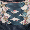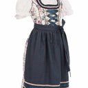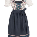 Unser außergewöhnliches Kinder-Dirndl vom deutschen Trachten Hersteller Maddox ist ein echter Hingucker und wird Ihre Tochter und Sie ganz sicher begeistern. Das bezaubernde Kleid hat ein liebevolles, florales Muster mit Blüten, das perfekt ergänzt wird durch eine dunkelblaue Schürze mit kleinen weißen Pünktchen. Das Dirndl wird im Rücken mit einem langen Reißverschluss geschlossen und den Brustbereich ziert eine blaue Satin-Schnürung mit strassbesetzten Miederhaken, die den trachtigen Charakter des Dirndls noch unterstreicht. Der Ausschnitt wird zusätzlich durch hochwertige rosa Borten und Rüschenbordüren betont.