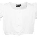 Das süße Kinderdirndl wird komplett mit einer weißen Bluse geliefert. Diese ist aus einem angenehm zu tragendem Material gefertigt und am Ausschnitt und den Ärmeln mit einer Wellen-Borte verziert. Dieses Dirndlkleid für Mädchen ist mit viel Liebe zum Detail gefertigt und wird Sie und Ihre Tochter mit Sicherheit begeistern. Es ist perfekt für festliche Anlässe und Hochzeiten, aber auch sehr süß für den Besuch beim Volks- oder Oktoberfest.