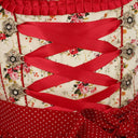 Dieses zauberhafte Kinder-Dirndl Zermatt von Country Maddox ist ein echter Hingucker und wird auf alle Fälle ein Lieblingsstück Ihrer Tochter! Das cremefarbene Kleid zieren hübsche Blumen in rosa, pink und grün. In Saumnähe befindet sich eine gefaltete Borte im Stoff der Schürze. Das Dirndl wird hinten mit einem Reißverschluss geschlossen. Den Brustbereich ziert eine Schnürung mit Metallösen in Blumenform mit Strass Elementen und einem feinen roten Band in Satinoptik. Der Ausschnitt wird von einer rot-glänzenden Rüsche betont. Abgerundet wird das 3-teilige Mädchendirndl mit einer roten Baumwoll-Schürze mit weißen Pünktchen und einer Borte im Kleiderstoff. Einfach bezaubernd!
