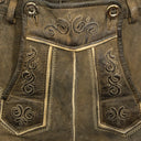 Die braune Lederhose ist besonders hochwertig verarbeitet und sehr weich im Griff. Der Hosenlatz wird vorne durch Knöpfe in Hirschhorn Optik geschlossen und auch die Träger sind mit Knöpfen befestigt. Die Bundweite kann hinten durch ein Lederband reguliert werden. Die abnehmbaren Stegträger sind variabel einstellbar und machen diese Hose zu einem zünftigen Begleiter für jedes Kind.