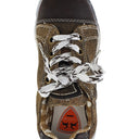 Das Innenfutter aus braun-weiß gemustertem Stoff sorgt für ein gemütliches Tragegefühl, während die weiche Innensohle den Fuß angenehm abfedert – perfekt für lange Tage voller Bewegung. Besonders praktisch: Der Sneaker wird mit zwei Paar Schnürsenkeln geliefert – klassisch weiß und zusätzlich in braun-weiß gemustert, für den individuellen Style.