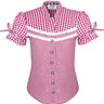 Diese zauberhafte Trachtenbluse für Mädchen ergänzt perfekt das Trachtenoutfit bei einem Besuch auf der Wiesn, einem Volksfest oder der Wasn. Das Material der kurzärmeligen Bluse ist feinste Baumwolle und so sehr angenehm zu tragen. Die Trachtenbluse ist komplett kariert, wird vorn mit Knöpfen geschlossen und Puffärmel und ein kleiner Stehkragen vervollständigen den trachtigen Look.