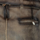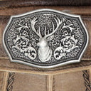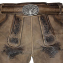 Neben der ansprechenden Optik überzeugt die Lederhose auch mit ihrer praktischen Ausstattung. Sie verfügt über zwei seitliche Eingriffstaschen, eine Gesäßtasche sowie eine kleine bestickte Messertasche am rechten Bein – perfekt für kleine Accessoires oder das traditionelle Trachtenmesser. Ein besonderes Highlight ist der im Lieferumfang enthaltene Ledergürtel mit einer kunstvoll verzierten Metallschnalle, die dem Outfit zusätzlichen Charakter verleiht.