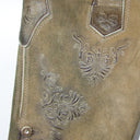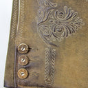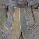 Diese kurze Lederhose aus Echtleder ist besonders hochwertig verarbeitet und dadurch weich im Griff. Sie wird mit einem tollen Ledergürtel mit Zierschnalle geliefert und liegt voll im Trend. Neben der auffälligen Stickerei seitlich am Bein und am Hosenlatz runden Knöpfe in Hirschhorn Optik die Lederhose perfekt ab. Der Hosenlatz wird vorn durch passende Knöpfe geschlossen und die Bundweite kann hinten durch ein Lederband reguliert werden. Neben den zwei Eingrifftaschen und der Tasche auf der Rückseite besitzt diese Lederhose auch noch eine kleine bestickte Tasche am rechten Hosenbein. Diese Lederhose besticht durch die raffinierte Verbindung von eleganten und derb-rustikalen Lederapplikationen.